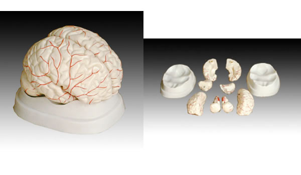 本模型適用于醫學院校在講解腦與腦血管課程時作直觀教具用,便于學生了解腦和它的動脈供應的整體概念,以及各部分的相互關系。顯示: 1,腦的外形結構:大腦外側面主要結構、大腦半球內側面和底面的主要結構、腦干各面的主要結構、小腦的主要結構。2,腦的動脈供應:動脈的來源、動脈在腦底面的行程和聯合情況、大小腦的動脈分布。本模型自然大,分成8件,置于塑料座上。尺寸:18.5x14x13.5CM。